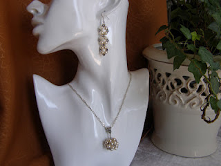 Miło mi pochwalić się wygraną na blogu http://pasjejotki.blogspot.com, a jest to piękny komplecik biżuterii z perełek - kolczyki i zawieszka na łańcuszku. Kobieta ta tworzy cudne prace, proponuję do niej zajrzeć, by nacieszyć oczy. Jotko, jeszcze raz dziękuję i pozdrawiam cieplutko wszystkich zaglądających w ten zimny, deszczowy poranek. Pozwolę sobie wykorzystać zdjęcia zrobione przez Jotkę, ponieważ biżuteria prezentuje się na nich niezwykle okazale, w rzeczywistości zresztą identycznie.